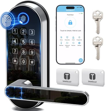 Keyless Entry with 6 Unlock Methods - Unlock with fingerprint, keypad, FOB, code, app or physical key. Secure and convenient access for kids, seniors, guests and Airbnb renters—no more lost keys.